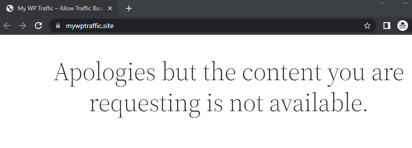 We added the plugin to this website and enabled traffic by few states other than ours. After setting it up, when we visited this website, it showed us the disabled message which we set as seen in the screenshot below.